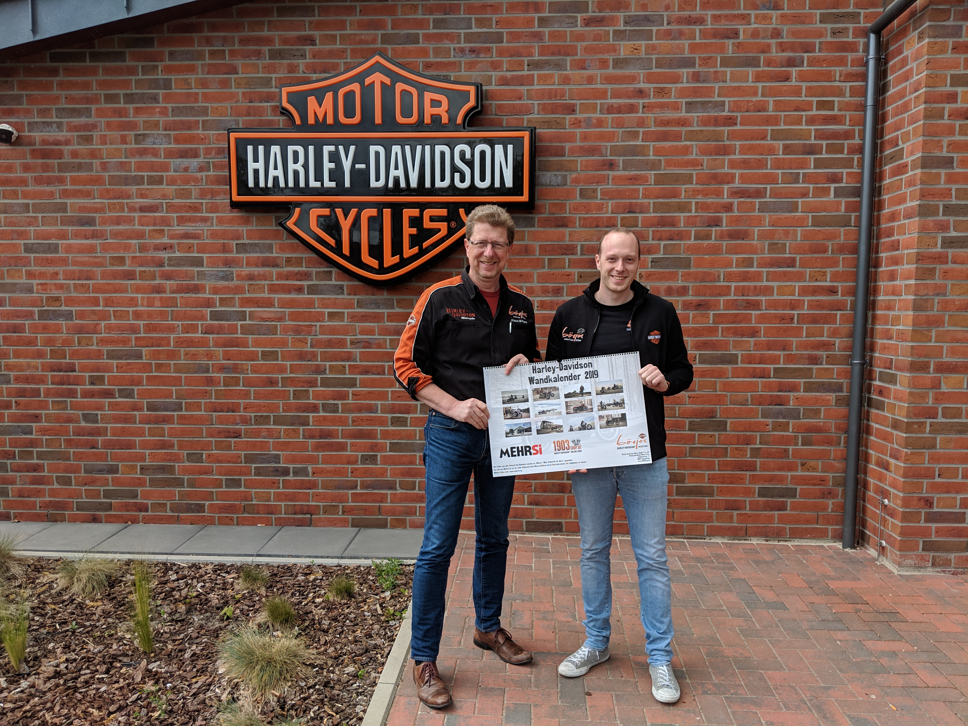 Uns als Motorradfahrer liegt MEHRSi am Herzen und so war die Idee für eine weitere Aktion geboren. Klaus und Steffen Börjes setzten sich zusammen und arbeiteten einen Kalender mit Harley-Davidson Motiven aus, der für das Jahr 2019 bei uns im Laden verkauft wurde. Wir freuen uns, auch mit dieser Aktion dazu beizutragen, dass die Kurven für Motorradfahrer sicherer werden.