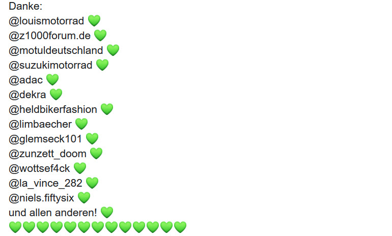 Danke an Bob Bobinski, Robert Räke, Eric Brien, La Vincé, Luise Kuserau, Max Ziebär. Die „ZunZett“, auch genannt „Takko-Bande“ aus dem z1000-forum.de z1000-forum.de