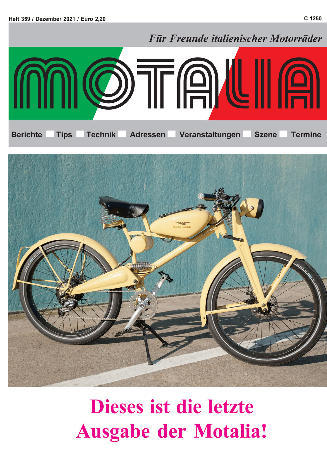 Und selbstverständlich gibt es bei den aktuellen Lieferproblemen (u. a. Papiermangel) und daraus resultierenden Preiserhöhungen, dem zurückgehenden Anzeigenvolumen (größtenteils altersbedingte Geschäftsaufgaben) und der langsam sinkenden Anzahl an Abonnenten (Hier spielt ebenfalls das Alter eine Rolle.) auch finanzielle Überlegungen. Wirtschaftlich betrachtet könnten wir mit einigen zusätzlichen Anstrengungen wohl noch ein paar Jahre durchhalten - aber auch wir werden älter und wir haben teilweise schlicht und ergreifend die Lust verloren. Aktuell müssen wir unter schwierigeren Bedingungen mehr wie früher arbeiten, um am Ende doch weniger Ertrag als vorher zu haben. Aus diesen und noch einigen anderen Gründen haben wir uns zu diesem Schritt - der Einstellung der Motalia - entschieden. Wir ziehen einfach den Ruhestand ein wenig vor und hoffen, in naher Zukunft wieder mehr zum Motorradfahren zu kommen, als es in den letzten Jahren der Fall war.
