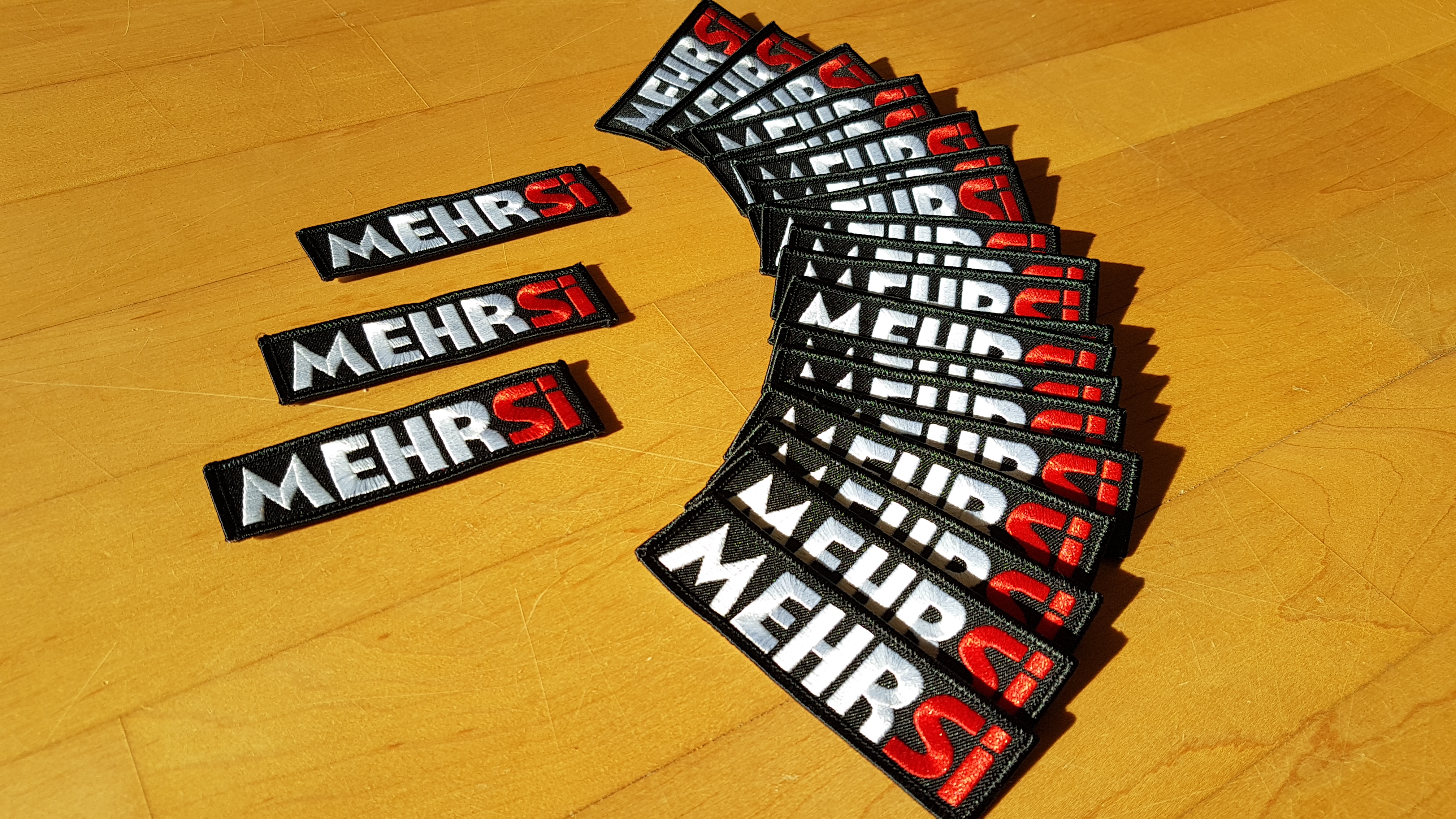 Die neuen MEHRSi-Patches sind da (gestickte Aufnäher 10 x 3 cm). 5 Euro inkl. Versand. Email an: info@mehrsi.org.