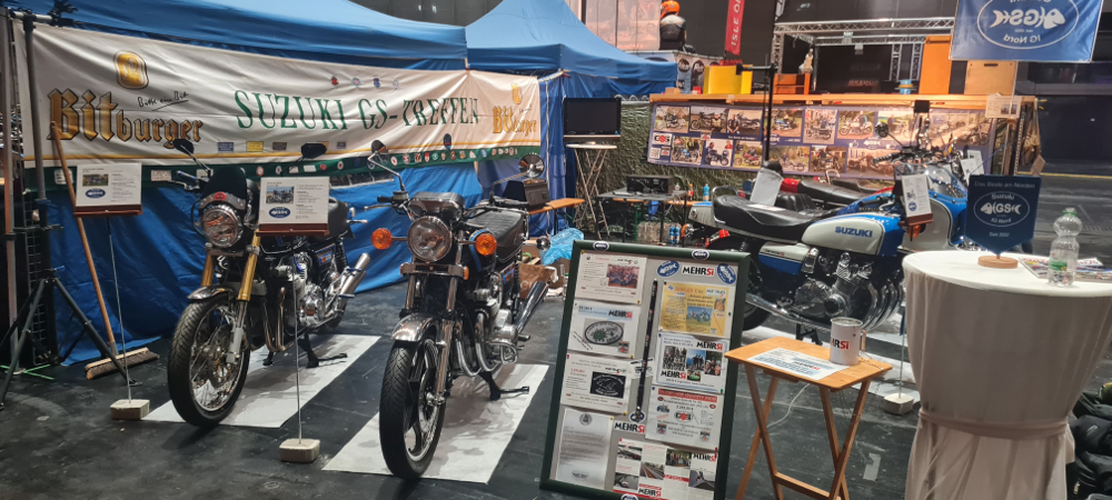 Spätestens seit dem GS-Treffen 2023 und nach Gesprächen über die Motorradmesse in Dortmund entstand die Idee, die Suzuki-GS-IG-Nord als Interessengemeinschaft auf der Bremen Classic Motor Show (BCM) vorzustellen. Nach der Zusage durch die Messeleitung wurde uns ein 35 qm Messestand in Halle 1 (Stand Nr.: 1 A 21) zugestanden. Nun ging es nicht unbedingt darum, die „schönsten“ GS'en (liegt eh im Auge des Betrachters) auszustellen, wir wollten eine interessante Mischung präsentieren. Gar nicht so einfach, beheimatet die IG-Nord doch derzeit sage und schreibe