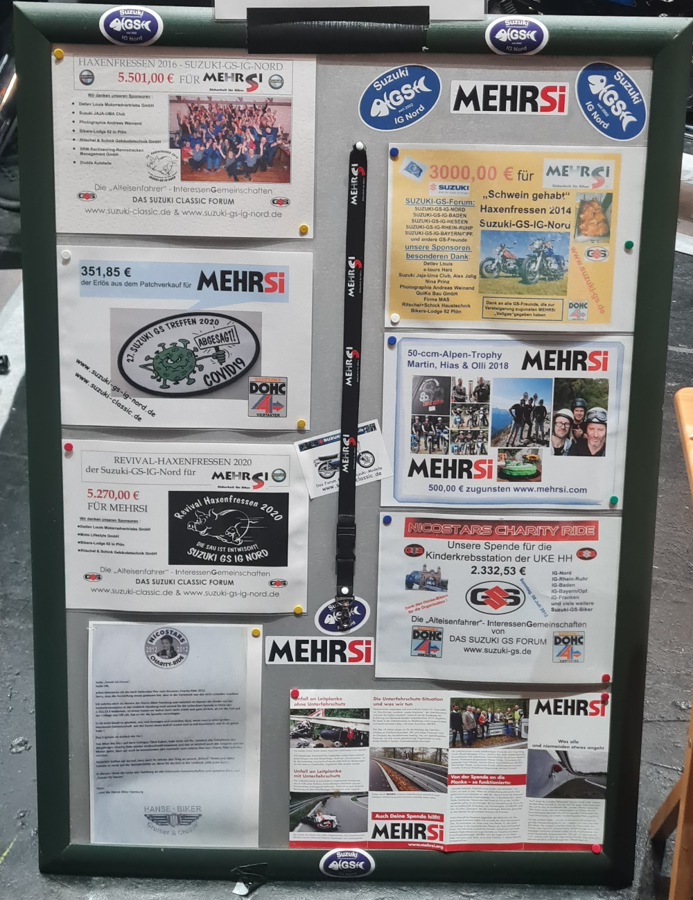 Nach Rücksprache mit Monika Schwill von MEHRSi wollten wir darüber hinaus am Stand der IG-Nord Spenden für den Unterfahrschutz an Leitplanken sammeln, denn jeder Euro ist wichtig, um das Leben von Motorradfahrern zu schützen. Also eine weitere Aktion der IG-Nord für MEHRSi.