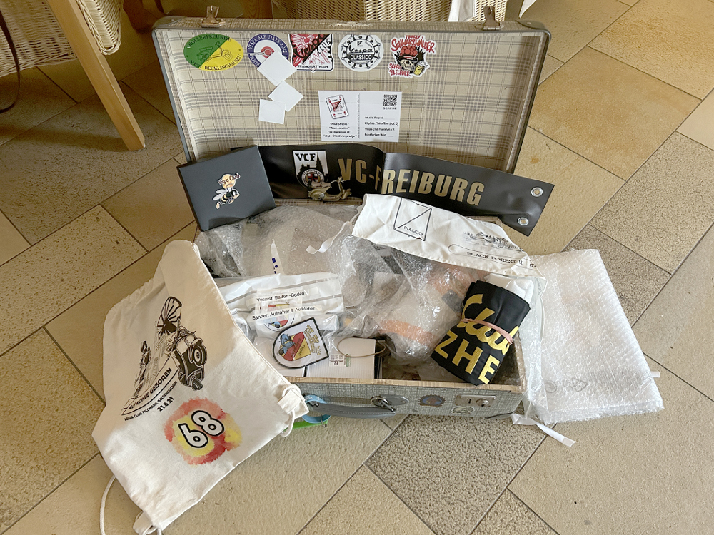Recklinghausen, 15.1.2024. Der VCVD-Staffellauf-Koffer hat sein Ziel erreicht: Nach mehr als 15-monatiger Reise quer durch Deutschland wurde er bereits im Herbst wieder an den VCVD-Vorstand zurückgegeben. Anfang Dezember konnten Vespa-Fans das gute Stück bei Ebay ersteigern. Der Koffer ging für 505,- Euro nach Zell am See (Österreich), von wo aus er im Sommer 2022 auch startete! Der Vorstand des Vespa Clubs von Deutschland stockte diesen Betrag auf glatt 1.000,- Euro auf und spendete die Summe zu gleichen Teilen an die gemeinnützigen Organisisationen „MEHRSi“ und „Um halb an der Bar".