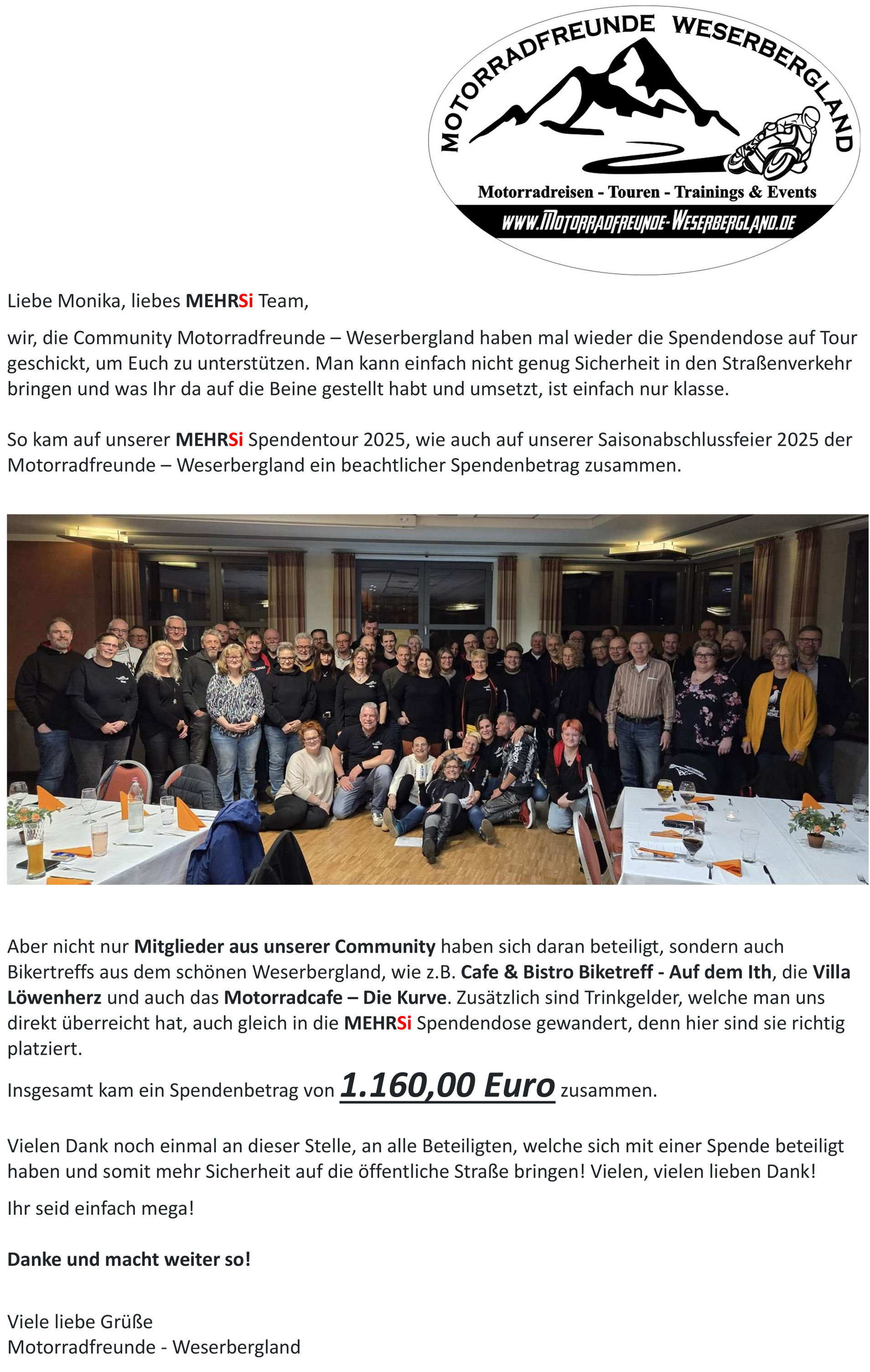Motorradfreunde-Weserbergland - Spendenaktion 2025
