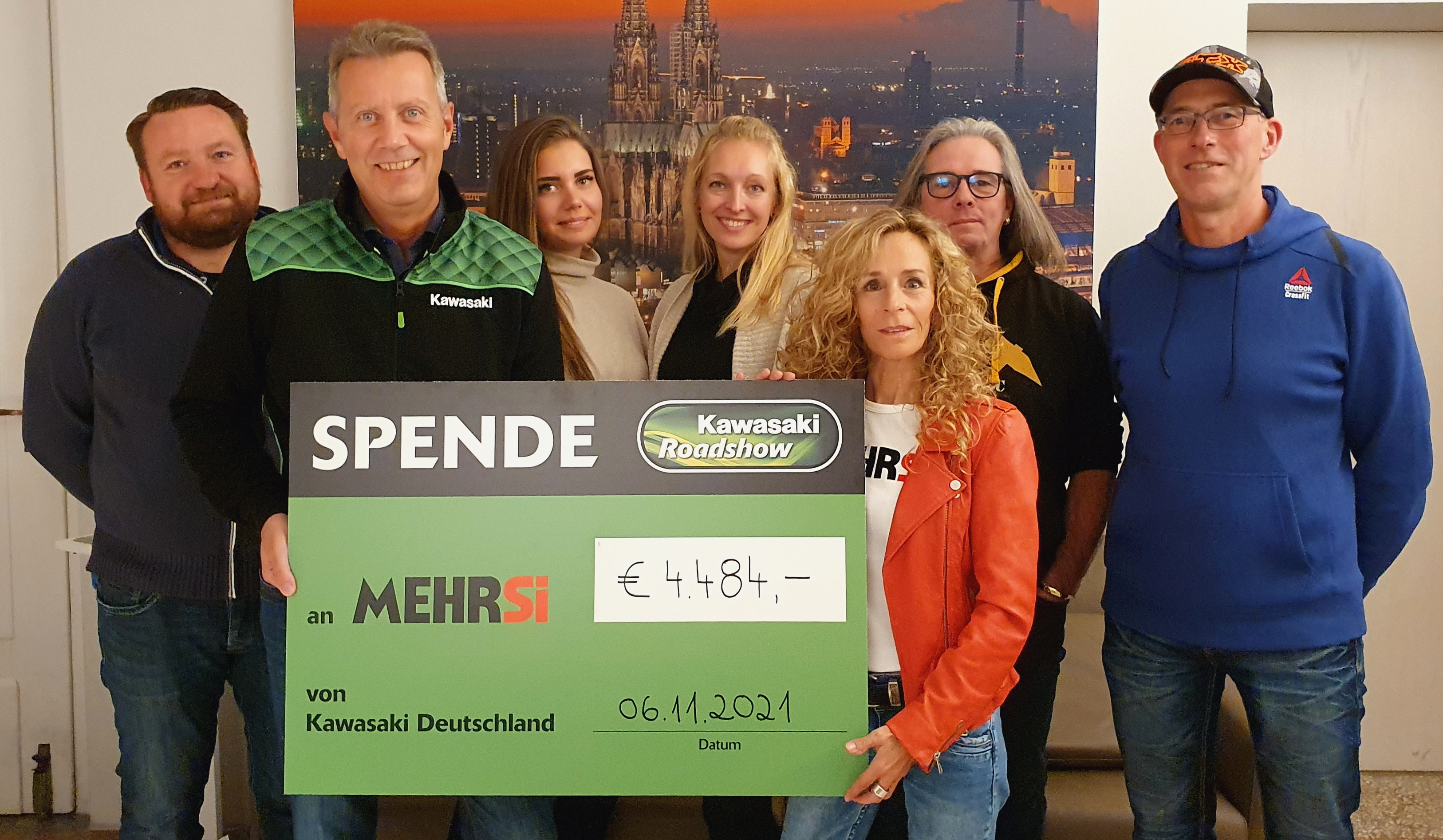 Monika Schwill, Gründerin und Geschäftsführerin von MEHRSi, freute sich riesig, als sie Anfang November den Spendenscheck von Kawasaki entgegennehmen konnte: „In zwei Jahren hat Kawasaki bereits rund 11.000 € für MEHRSi gesammelt. Das hilft uns, die Sicherheit für Biker Stück für Stück zu verbessern. Vielen Dank an alle, die schon dazu beigetragen haben. Das gilt auch für das Engagement der Roadshow-Teams!“