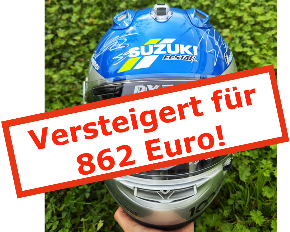 Gestern Abend endete die Charity Auktion, die Suzuki Motorrad Deutschland zugunsten MEHRSi startete. Dieser besondere Helm erlangte die stolze Summe von 862 Euro. Wir von MEHRSi sagen DANKE an Suzuki Deutschland für diese tolle Aktion - MERCi dafür.