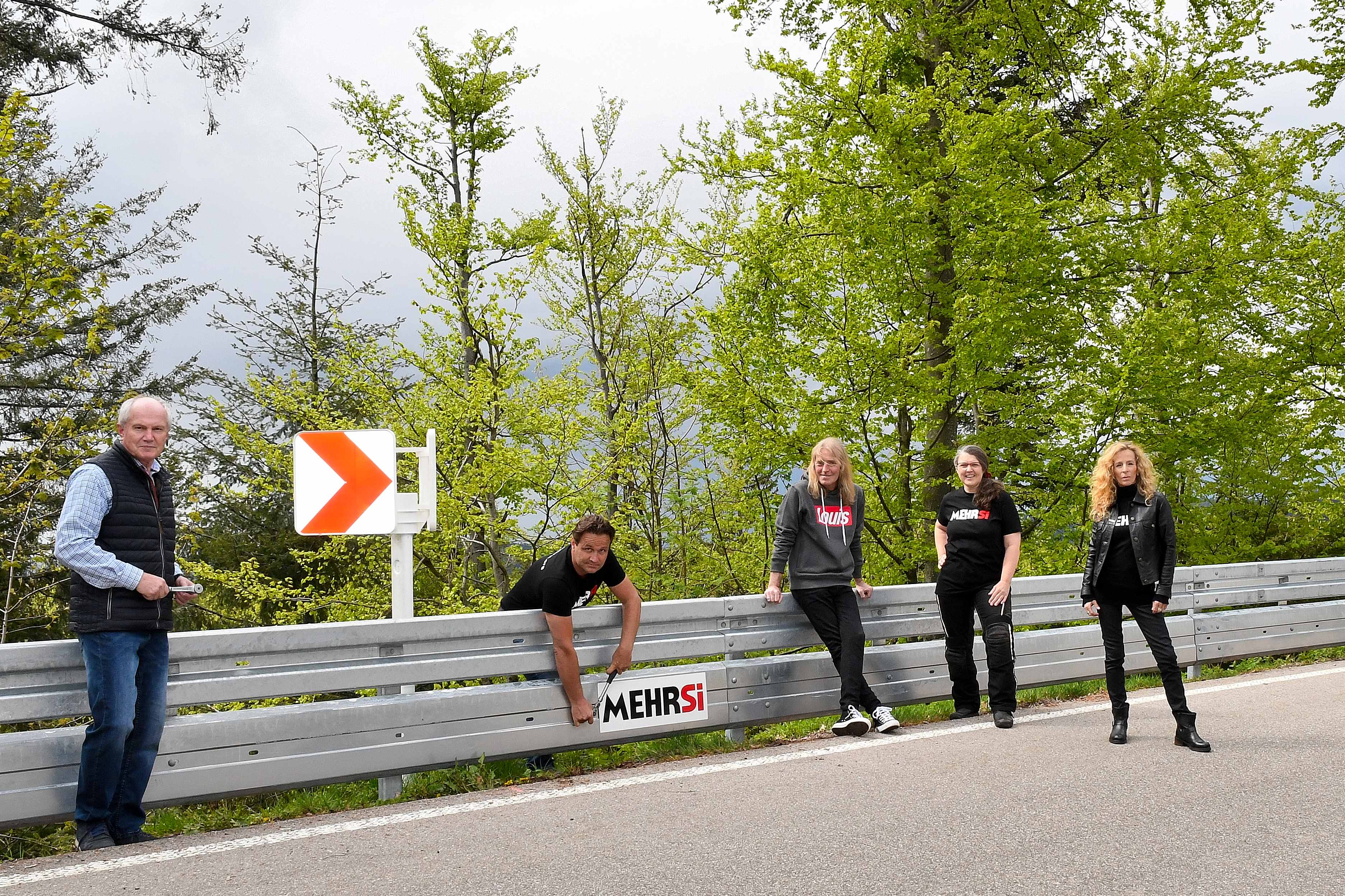 Zwar sind entlang der zahlreichen Kurven der K 5370 und der K 5371 zur Sicherheit der Autofahrer Leitplanken angebracht, aber für Motorradfahrer sowie Zweiradfahrer sind sie im Falle eines Sturzes in der Kurve weniger Schutz, sondern vielmehr Gefahrenquelle, wenn beispielsweise ein Zweiradfahrer infolge eines Unfalls mit Wucht auf die starre Leitplanke oder gar auf einen Befestigungspfosten prallt oder unter der Leitplanke hindurch ins abschüssige Waldgelände geschleudert wird. Nicht weniger gefährlich sind starre Kurvenleittafeln. Der Unterfahrschutz, so erklärte es Monika Schwill, Geschäftsführerin von MEHRSi, bei der Freigabe, ist eine federnd gelagerte zweite Schutzplanke und absorbiert aufgrund ihrer elastischen Aufhängung die Aufprallenergie der Bikerin oder des Bikers und rettet so Leben. Roland Gäßler begrüßte die Maßnahme und bezifferte die Kosten für die komplette Erneuerung der Leitplanken an der K 5370 und der K5371 auf 20000 Euro, die 11000 Euro für den Unterfahrschutz und für die neuen, flexiblen Kurvenleittafeln steuerte MEHRSi bei. Er dankte Monika Schwill für die effektive Zusammenarbeit, Monika Schwill tat dies ihrerseits für das rasche Umsetzen der Maßnahme. Ute Vogt, MdB, Schirmherrin der gemeinnützigen GmbH MEHRSi und selbst begeisterte Motorradfahrerin, lobte den Ortenaukreis, dass er sich um die Sicherheit von Motorradfahrern kümmere und wünschte sich als Direktive, dass der Unterfahrschutz überall, wo Leitplanken installiert würden, gleich mit angebracht werde. Dr. Stefan Gromer plädierte aus Medizinersicht für den Unterfahrschutz, Kay Blanke informierte darüber, wie die Detlev Motorrad-Vertriebs GmbH mit MEHRSi zur Sicherheit der Motorradfahrer zusammenarbeite. Alle Anwesenden honorierten mit Beifall, dass Monika Schwill sich inzwischen seit 18 Jahren für die Sicherheit der Bikerinnen und Biker einsetze. Zu guter Letzt informierte Stefan Beilharz, Hersteller von Straßenausrüstungen in Vöhringen, über die Kurvenleittafeln.
