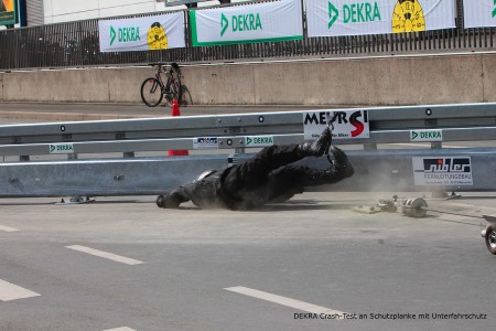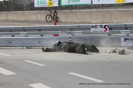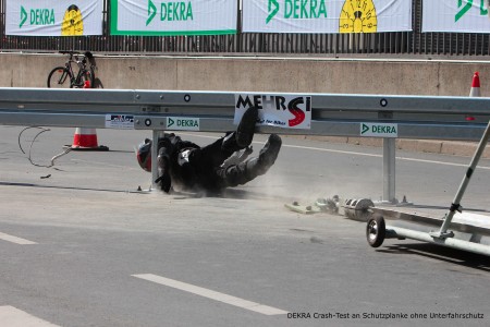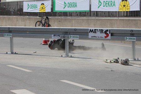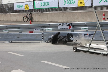 DEKRA und MEHRSi auf Kulmbacher Sternfahrt 2010 Crash-Test an Schutzplanke mit und ohne Unterfahrschutz