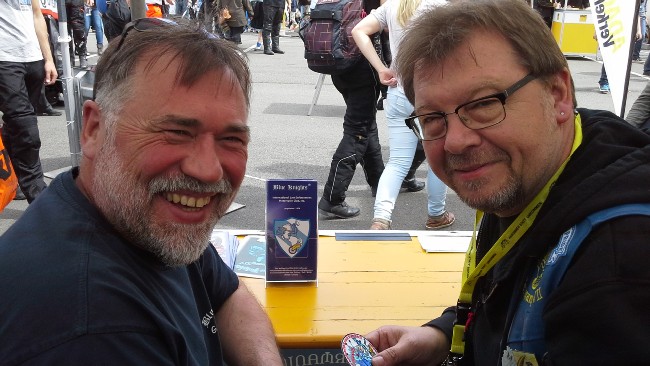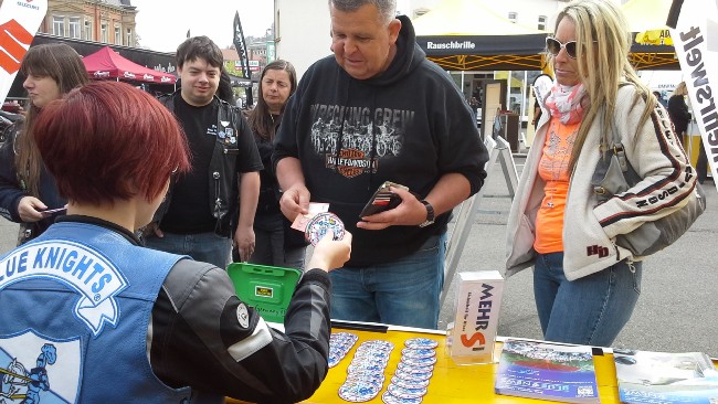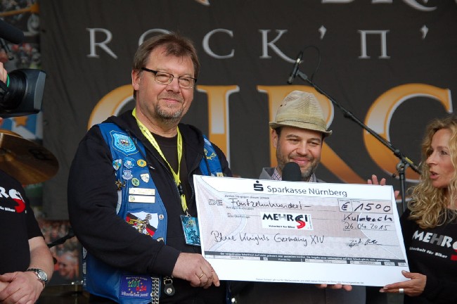 Motorradsternfahrt Kulmbach - mit Blue Knights Germany XIV und Schecküberreichung an MEHRSi auf der Hauptbühne.