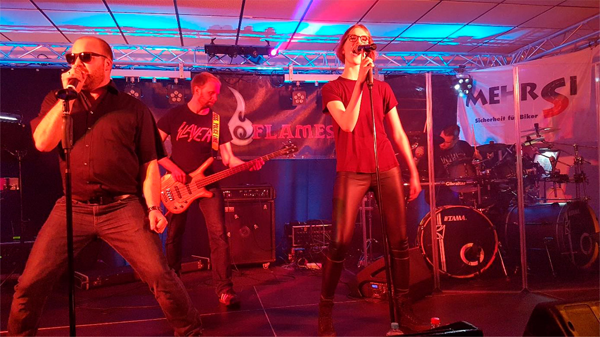 Der sonst tiefenentspannte Hüne Puffer ist zu Veranstaltungsbeginn mal sichtlich aufgeregt, ob sich der auserkorene Festsaal denn auch füllen würde. Dabei ist längst bekannt: „Wenn Puffer ruft, kommen sie alle!“ Und so war es dann auch. Schon kurze Zeit später wird das Deo aller auf eine harte Probe gestellt. Gleich zwei Bands (Ameos und Frozen Flames) rocken nacheinander die Bude.