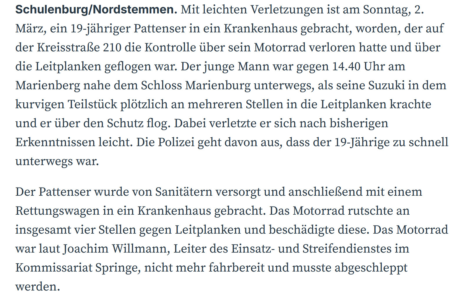 Dem 19-jährigen (erlitt zum Glück nur leichte Verletzungen) wünschen wir gute Besserung.