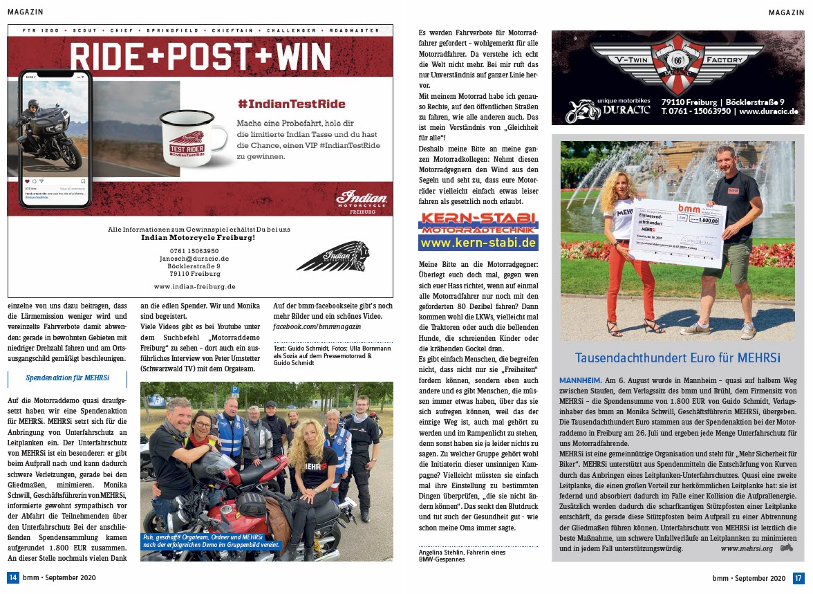 Artikel als Pdf: bmm - Motorraddemo + Scheckübergabe. Ausgabe: September 2020