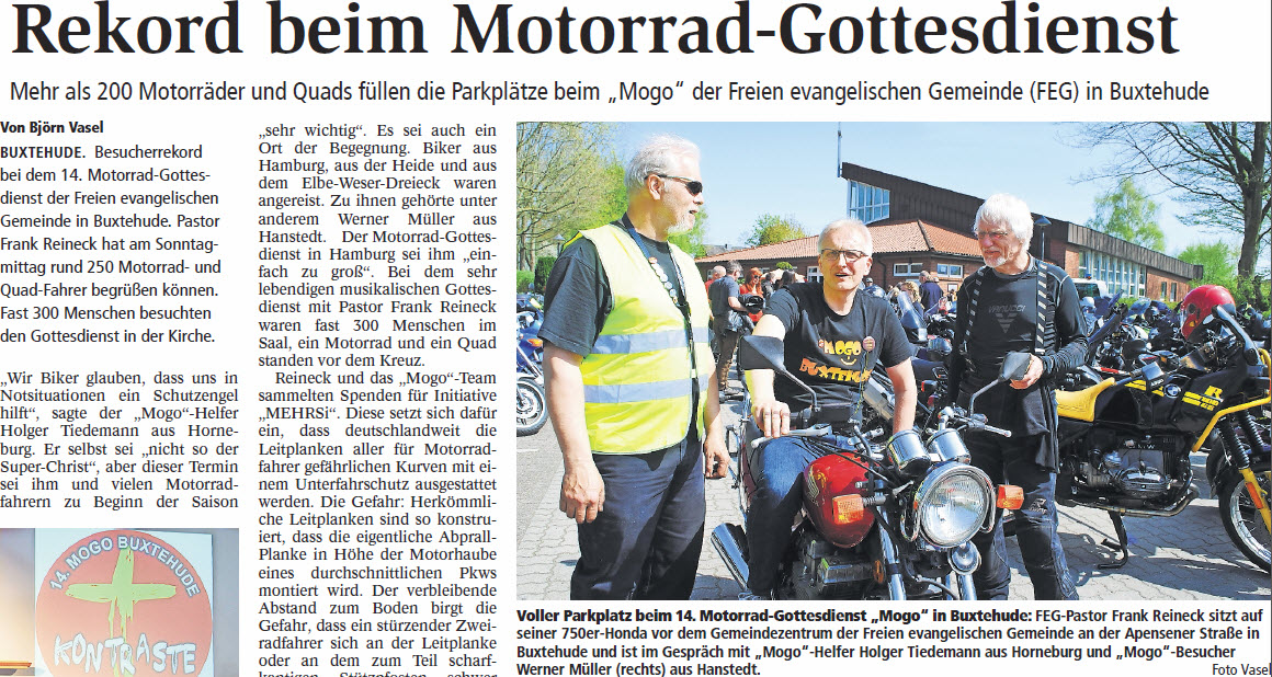 Buxtehuder Tageblatt, 23.04.18 "Rekord beim Motorrad-Gottesdienst