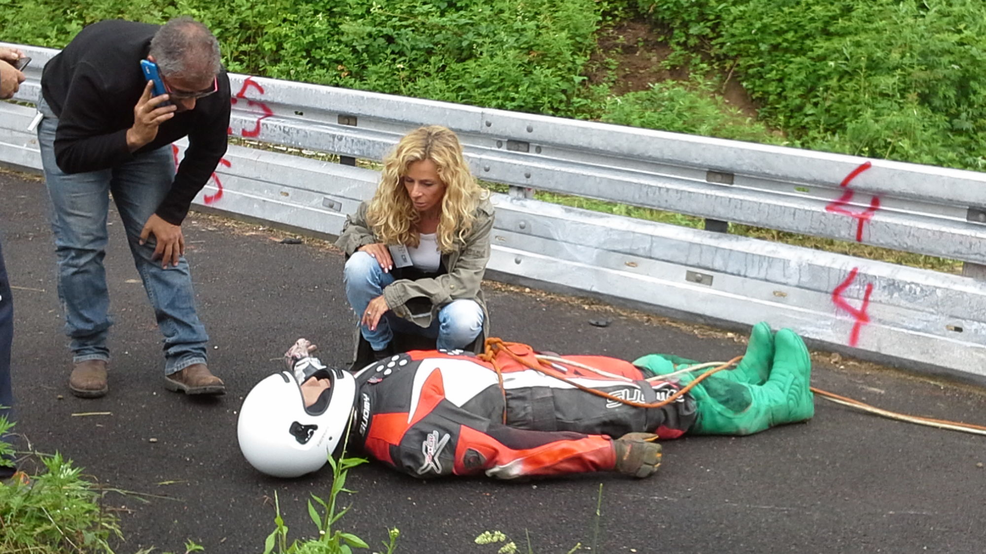 Planke mit neuem Unterfahrschutz. Sirenen heulen – Feld räumen! Dummy wird aus dem Testtunnel geschossen. Sekunden später schlägt er ohrenbetäubend in den Unterfahrschutz ein. Gespanntes Warten, dann das Ergebnis: Test bestanden – Dummy lebt!