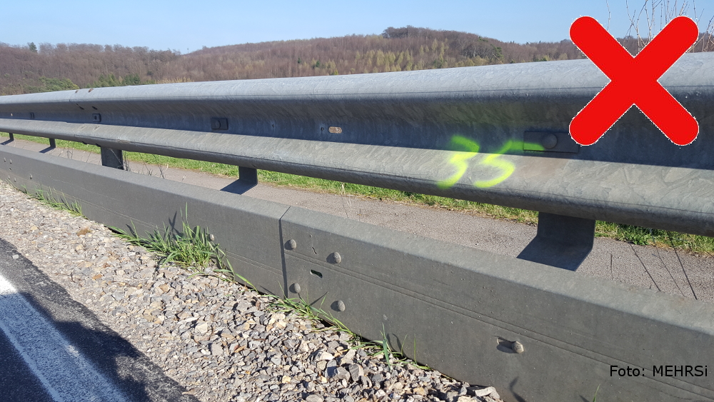 Zwischen Schutzplankenholm und Unterfahrschutz (so auch zum Bankett) darf die Spaltbreite 5 cm nicht überschreiten, da sonst die Gefahr besteht, dass Gliedmaßen in die Zwischenräume geraten und abgetrennt werden.