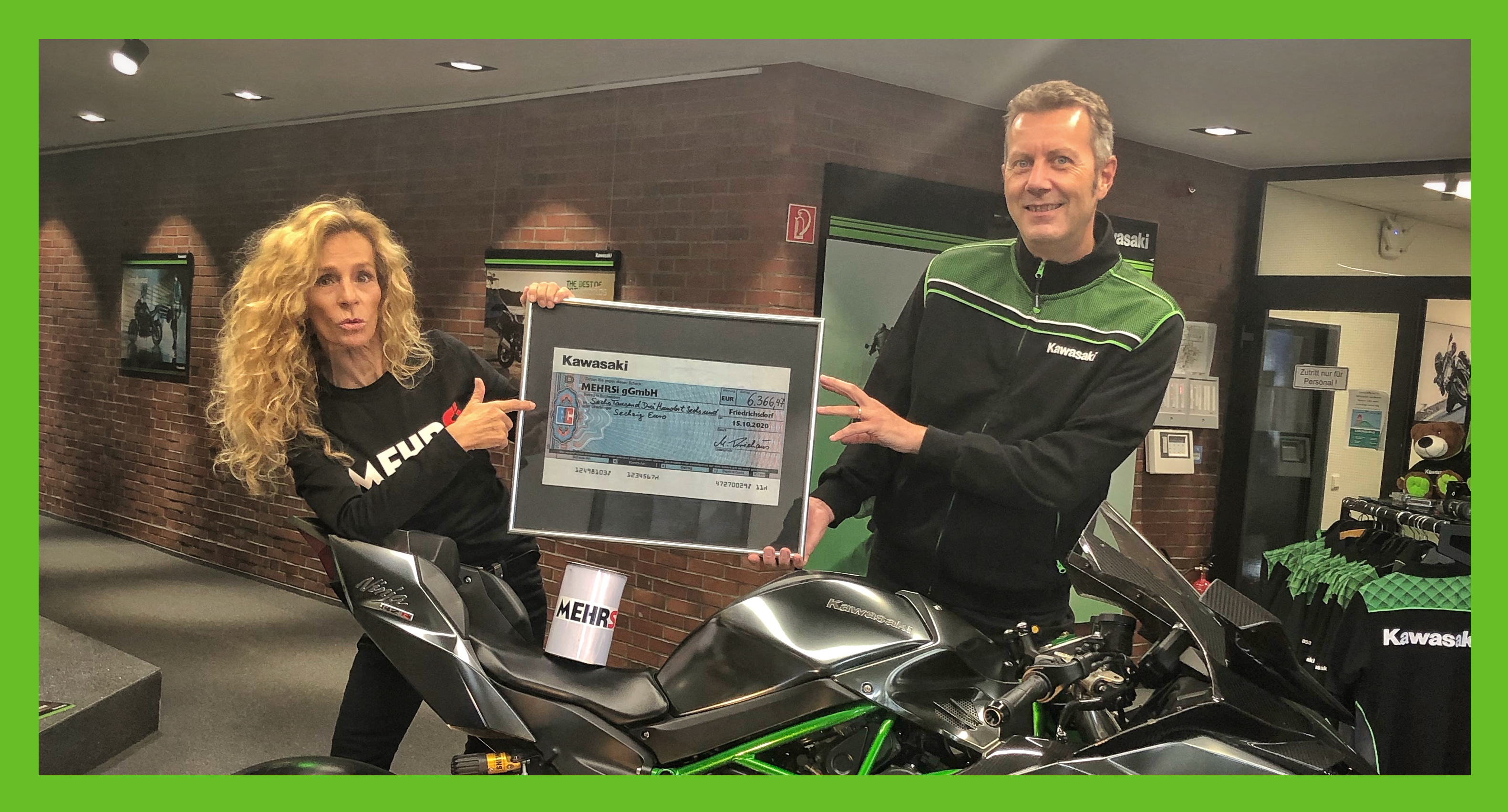 Anfang Oktober konnte Monika Schwill, Gründerin und Geschäftsführerin von MEHRSi, den Spendenscheck entgegennehmen: „Eine großartige Aktion von Kawasaki. Danke an alle, die dazu beigetragen haben. Diese Spende hilft, möglichst viele Leitplanken in gefährlichen Kurven mit einem Unterfahrschutz für Motorradfahrer sicherer zu machen.“
