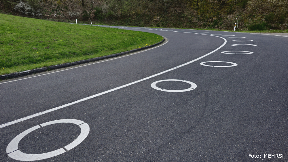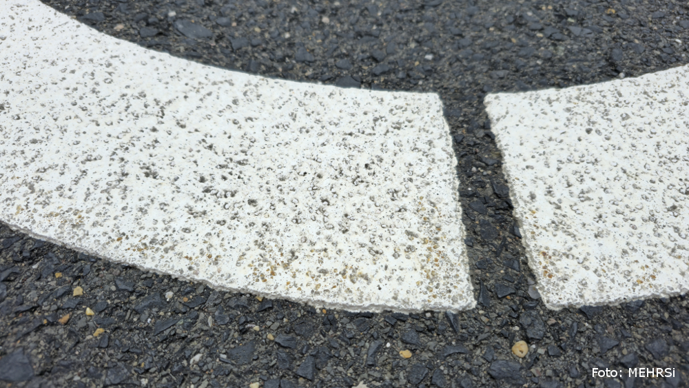„Ein besonders wichtiger Aspekt bei der Konzeption der Versuche lag für uns in der sicheren Befahrbarkeit der neuen Markierungen. Wir haben daher eine Reibeplastik mit einem besonders hohen Anteil an Griffigkeitsmitteln verwendet. Die Griffigkeit der Ellipsen liegt somit mindestens so hoch wie auf der umgebenden Straßenoberfläche, auch bei Nässe.“