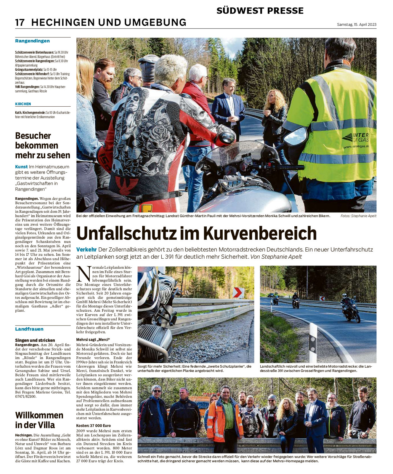 Den Artikel als PDF: Südwest Presse "Unfallschutz im Kurvenbereich"