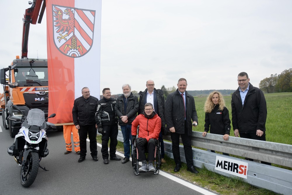 Dessen Verbreitung in ganz Deutschland ist das erklärte Ziel der gemeinnützigen GmbH MEHRSi (Abkürzung von Mehr Sicherheit) und eine Herzensangelegenheit von Gründerin und Geschäftsführerin Monika Schwill. Für Beide gab es nun bei der offiziellen Übergabe des um einen Unterfahrschutz erweiterten Leitplankensystems am Streckenabschnitt der FÜ 15 zwischen Ammerndorf und Buttendorf ein herzliches Wiedersehen.