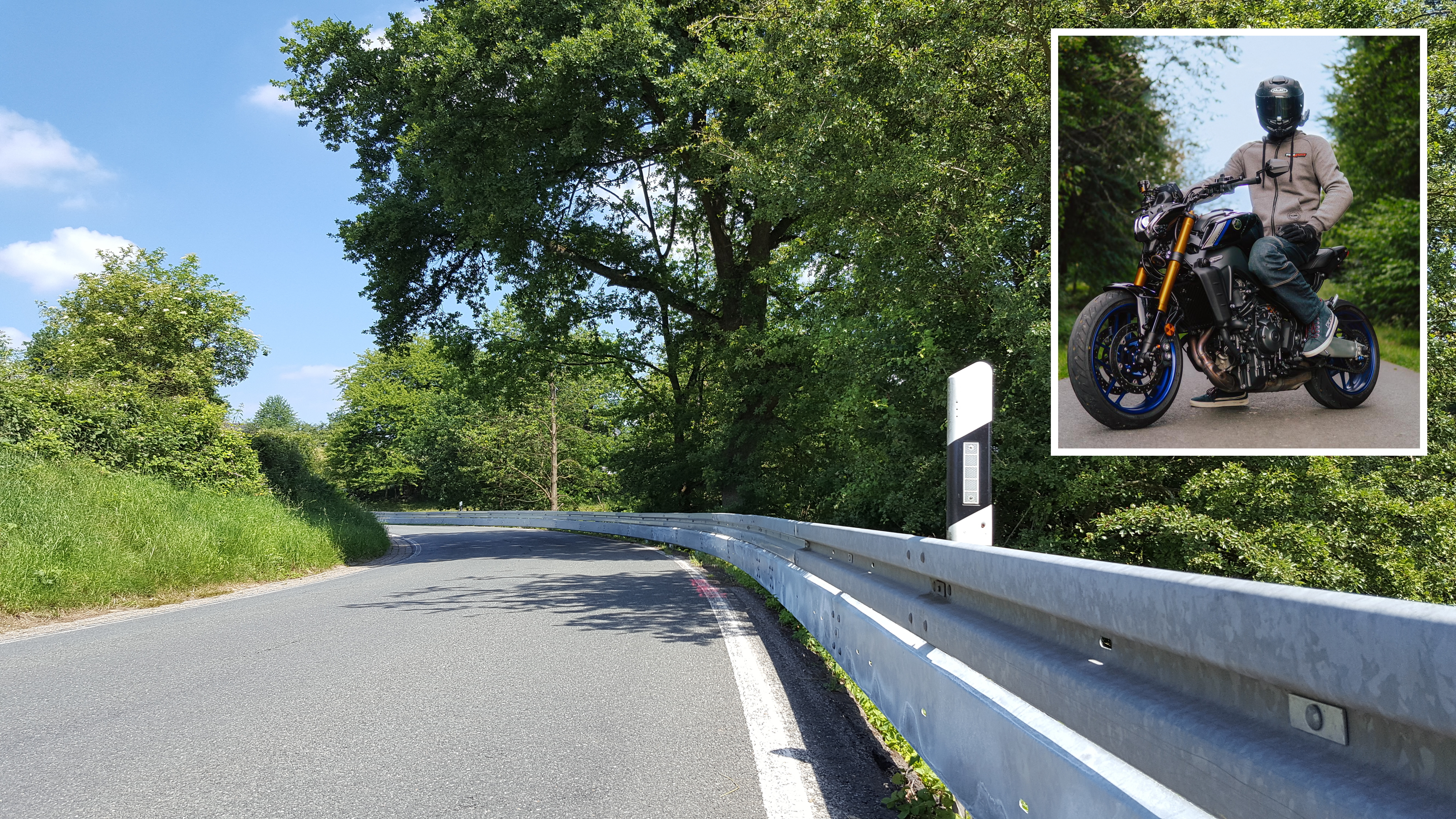 In einer langgezogenen Linkskurve ist es mir dann passiert: Mit circa 90 km/h hatte ich einen Lowsider, mir ist das Hinterrad weggerutscht und ich rutschte mit meinem Bike auf die Leitplanke zu. Nachlassende Konzentration gepaart mit kaltem Straßenbelag und kalten Reifen sind nie eine gute Kombi, so auch in meinem Fall nicht. Ich selbst habe die Leitplanke zum Glück nicht erwischt, auch mein Bike hat sie nur leicht berührt.